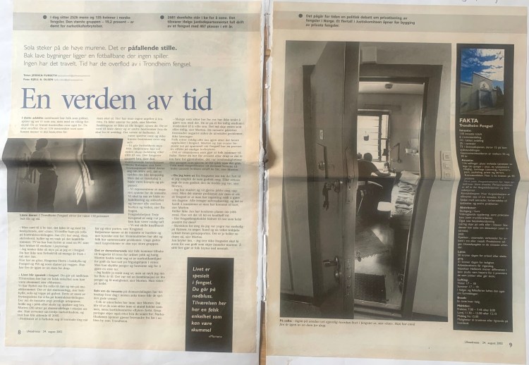 Sola steker på de høye murene. Det er påfallende stille. Bak lave bygninger ligger en fotballbane der ingen spiller. Ingen har det travelt. Tid er det overflod av i Trondheim fengsel.