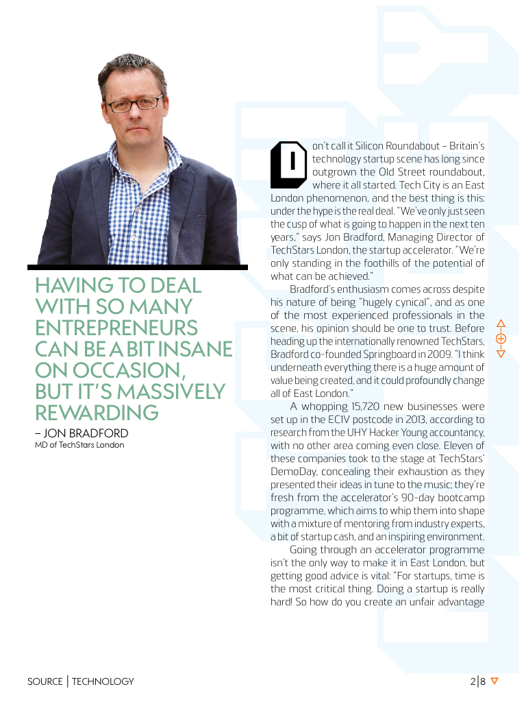 Bradford’s enthusiasm comes across despite his nature of being “hugely cynical”, and as one of the most experienced professionals in the scene, his opinion should be one to trust. Before heading up the internationally renowned TechStars, Bradford co-founded Springboard in 2009. “I think underneath everything there is a huge amount of value being created, and it could profoundly change all of East London.”