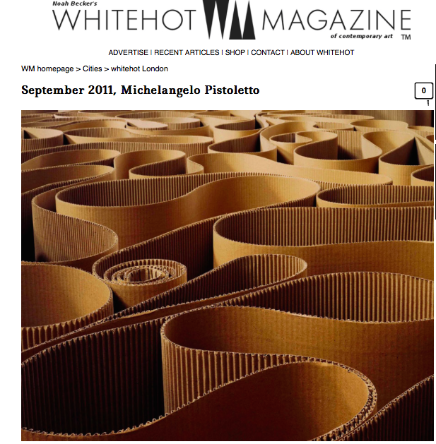 Michelangelo Pistoletto has got us all working for him. The artwork displayed at the Serpentine is only part of the equation; the rest is up to us visitors, moving slowly through the maze of swirling cardboard. The corrugated paper winds itself around the entire gallery, leading us on, every now and again depositing us in front of a massive mirror. There is no escaping Pistoletto’s mirrors; it is just you there, surrounded by white walls and cardboard, with no choice other than to look. Your eyes scan over your fellow audience, the walls and the ceiling, until like it or not, they come to rest on your own reflection.