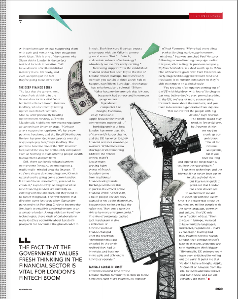 Still, there can be significant barriers to overcome for startups moving into a traditionally-minded area like finance. “If you’re trying to do something new it’s only natural you’re going come across hurdles. If it hasn’t been done before, you need to create it,” says Godfrey, adding how new financing models are currently co-existing with the old ones, but they need to be better integrated. The first steps in that direction came last year, when Santander partnered with Funding Circle to become the first bank to establish a referral system to an alternative lender. Along with the rise of new technologies, these kinds of collaborations makes Godfrey optimistic about London’s prospects for becoming the global leader in fintech. She’s less sure if we can expect to compete with the Valley in a more general sense: “But for fintech, and certain subsets of technology? Absolutely we can! It’s really exciting.”