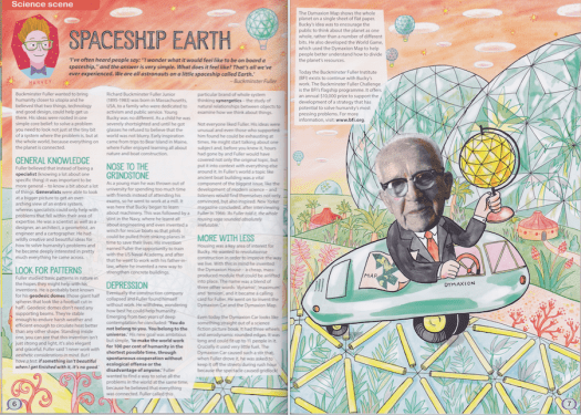 The Dymaxion Map shows the whole planet on a single flat sheet of paper, without any of the usual distortions that you get with maps – the idea was to encourage people to think about the planet in a more comprehensive way, instead of focusing on individual countries. Fuller also developed the World Game, which used the Dymaxion Map to help people better understand how to use the planet’s resources to the benefit of everybody. Fuller figured we were all in the same boat, so it would make more sense if we all pulled in the same direction: “I’ve often heard people say: ‘I wonder what it would feel like to be on board a spaceship,’ and the answer is very simple. What does it feel like? That’s all we have ever experienced. We are all astronauts on a little spaceship called Earth.”