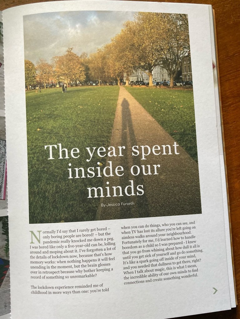 Normally I’d say that I rarely get bored – only boring people are bored! – but the pandemic really knocked me down a peg. I was bored like only a five year old can be, lolling around and moping about it. I’ve forgot a lot of the details of lockdown now, because that’s how memory works: when nothing happens it will feel unending in the moment, but the brain glosses over in retrospect because why bother keeping a record of something so unremarkable?