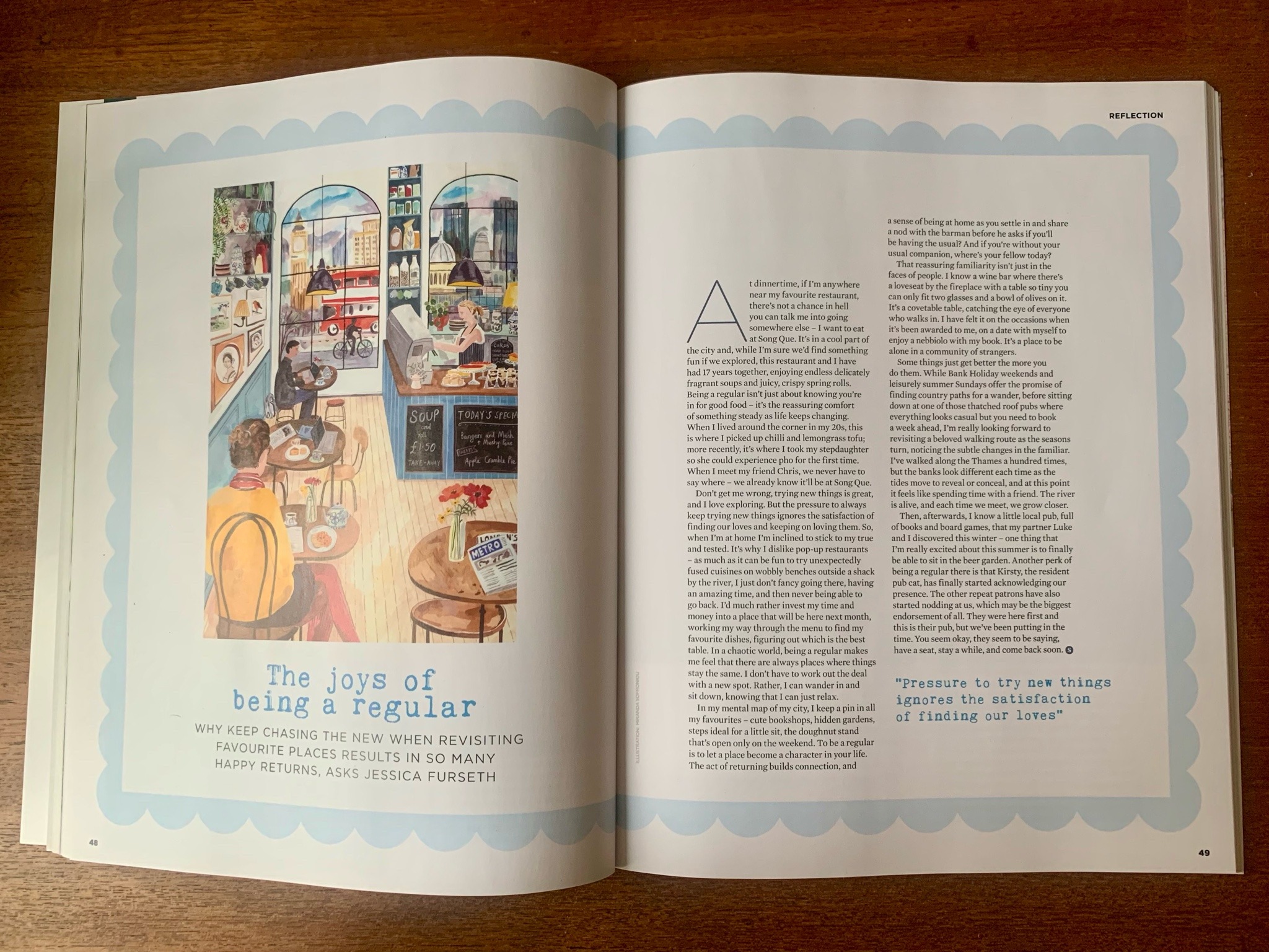 The joys of being a regular Posted byJessica Furseth05/06/202505/06/2025Posted inJournalism Published in The Simple Things, May 2025. Share this: Click to email a link to a friend (Opens in new window) Email Related Published by Jessica Furseth Journalist; Londoner. View more posts