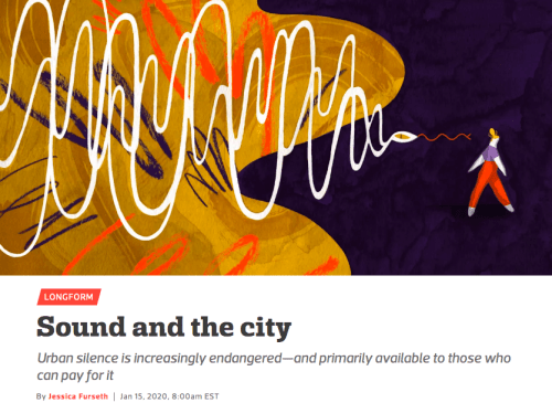 Everyone in the city is bothered by sound to some extent, but whether by design or accident, noise is also an agent of discrimination. Joan Casey, assistant professor of environmental health sciences at Columbia University in New York, has done several studies on the demographics of noise pollution in the U.S. “We saw there was on average high levels of noise exposure in communities of color, primarily in African-American communities,” says Casey. While the U.S. had a golden era of noise research in the 1970s, there have been no national standards since the Environmental Protection Agency’s Office of Noise Abatement and Control was dismantled in 1982 and noise pollution became a state matter. “We should start monitoring noise more broadly across the country so that we actually understand what the levels are,” says Casey. “Then we could do more detailed health studies, with the aim to inform policymakers to set noise guidelines.”